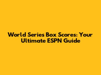 World Series Box Scores: Your Ultimate ESPN Guide